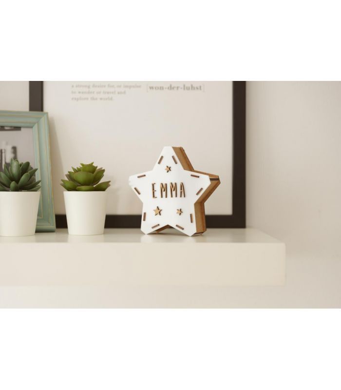 Young children feel more comfortable with a dim light in their room when it's time to go to sleep. Even a little light is enough to make them feel safer. So, if you're looking for original lamps for little ones, these personalized wooden star lamps are perfect gifts.