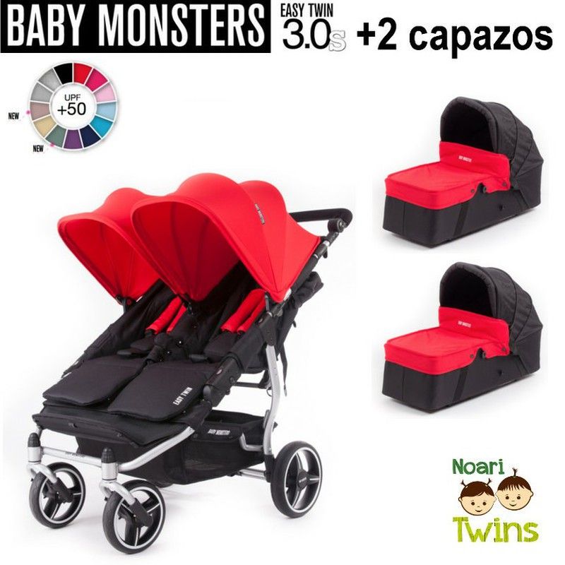 PACK Baby Monsters Easy Twin 3.0S + 2 carrycot - gray chassis